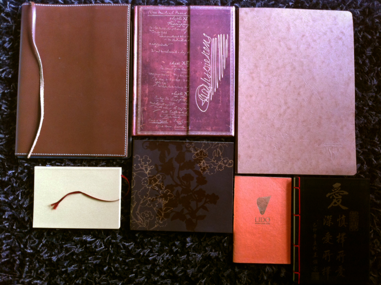Attention, carnets chics ! Cuir, tons ivoire ou parcheminés, ors, gravures et vernis, coutures… Le tout sous le regard bienveillant de Dickens (la signature !). Mais tout ce luxe n’empêche pas de s’encanailler, alors vous y trouverez aussi un petit carnet du Lido… 😉