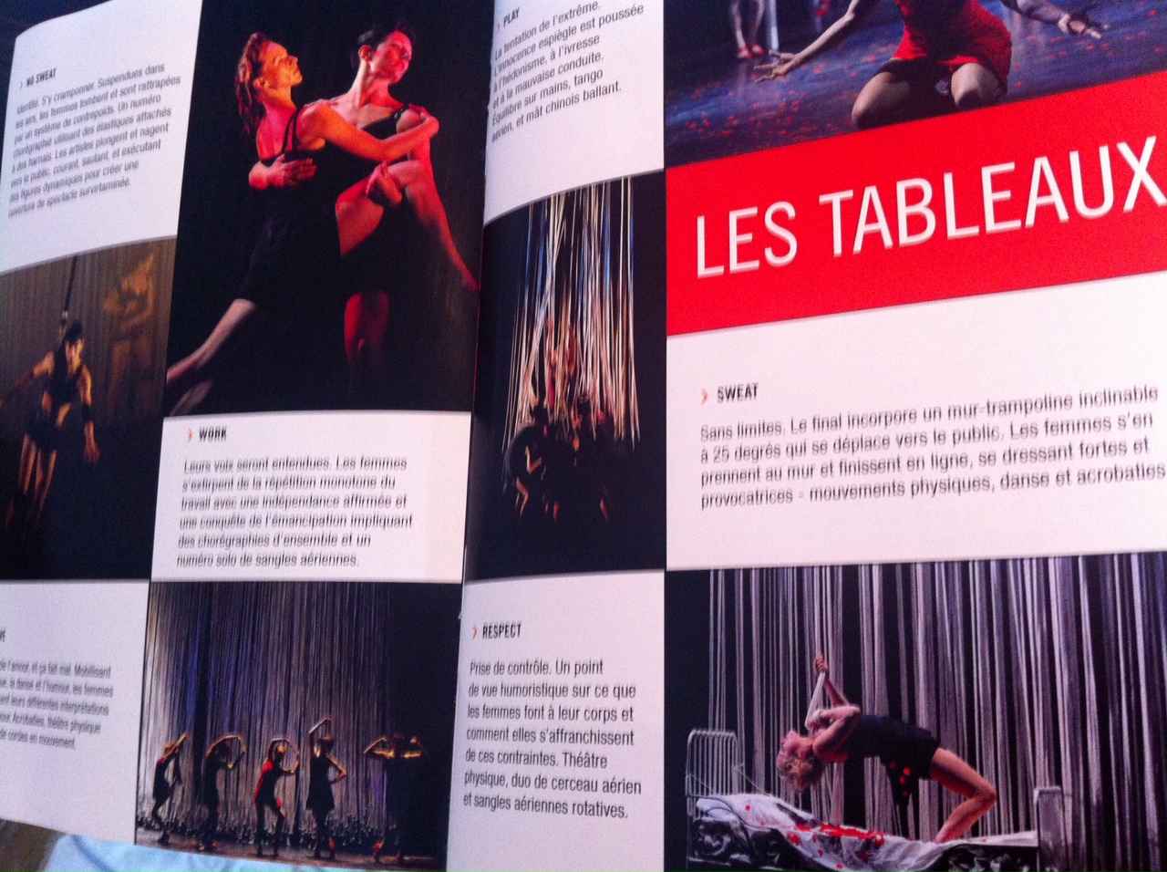Le show « No Sweat » de la Generating Company nous expose, de tableau en tableau, le quotidien des femmes : WORK, PLAY, DANCE, RESPECT… avec ce qu’il faut de décalage, de prouesses physiques et d’inventivité pour mettre le « cirque-à-Papa » aux oubliettes ! Une expérience dynamisante, entre cirque, danse et théâtre, assortie d’une bande son très réussie.