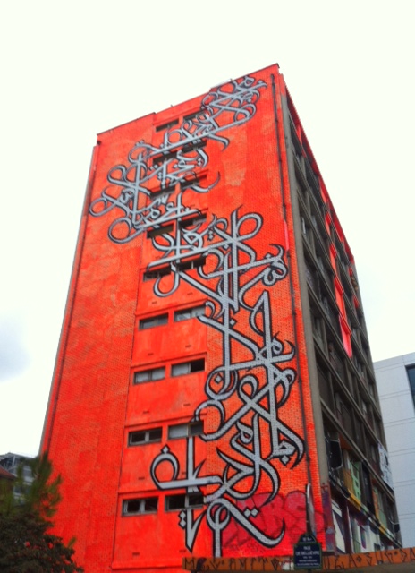 Pour le coup d’envoi, nous n’avions pas choisi l’un des points de départ « officiels », mais un lieu de rendez-vous du parcours alternatif : la Tour Paris 13. Cette tour désaffectée, sur les quais tout près de Bercy, est inoccupée (à quelques logements près) et ses 36 appartements sur 9 étages sont dédiées au street art. Il était donc possible de la « visiter » de nuit, avant qu’elle soit totalement détruite dans quelques semaines. Mais l’interminable file d’attente a eu raison de notre patience et, après 1 heure d’attente, nous avons changé nos plans et mis le cap vers un quartier que la truculente Madame G affectionne particulièrement…