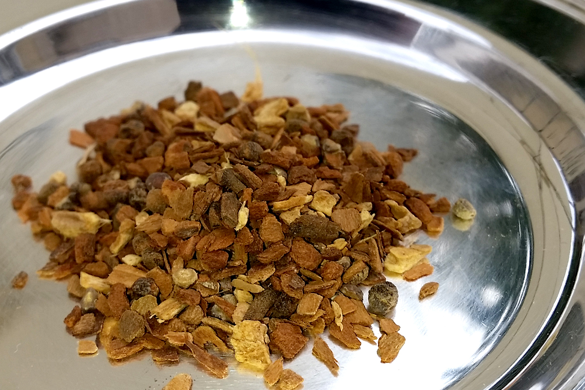 Le Yogi Tea Classic (le plus connu d’une large gamme d’infusions que propose la marque) est composé de cannelle, cardamome, gingembre, clous de girofle et poivre noir, selon les principes ayurvédiques, un ensemble de croyances traditionnelles indiennes concernant la vie et son équilibre (Ayur = la vie, Veda = sagesse) et dont le yoga fait également partie.