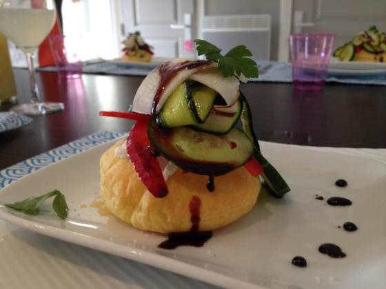 Pour fêter l’arrivée (durable ?) du soleil, une entrée simple et fraîche au menu : un disque de pâte feuilletée, … Plus